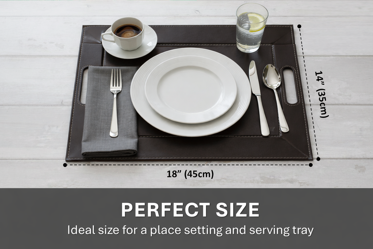 DUO PLACEsMAT Convertible Tray and Reversible Placemat, Crafted with Wood Core and Wrapped in 2-Color Premium Faux Leather - Strong, Versatile and Stylish for any Décor. Perfect for casual dining, parties, patio, ottoman, and as a desk mat. Space saving.